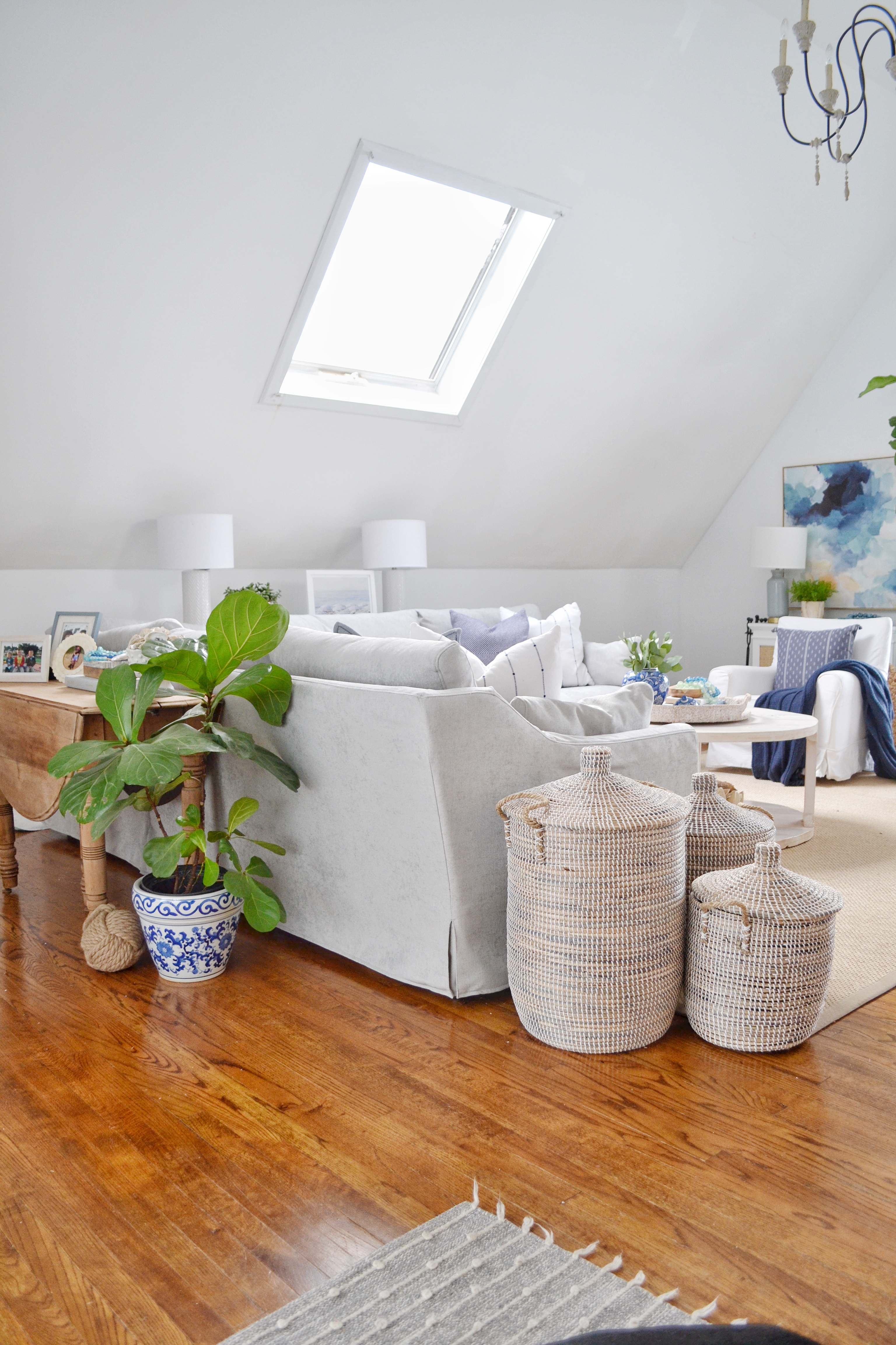 A life changing miracle happened in our large family room specifically to our Farlov sectional, we were able to put a beautiful PERFORMANCE fabric cover on her. I mean if there was ever a couch that was beat on, it is this sectional! Here is how the room has always looked, I love the bright white, however it doesn’t come without its challenges.